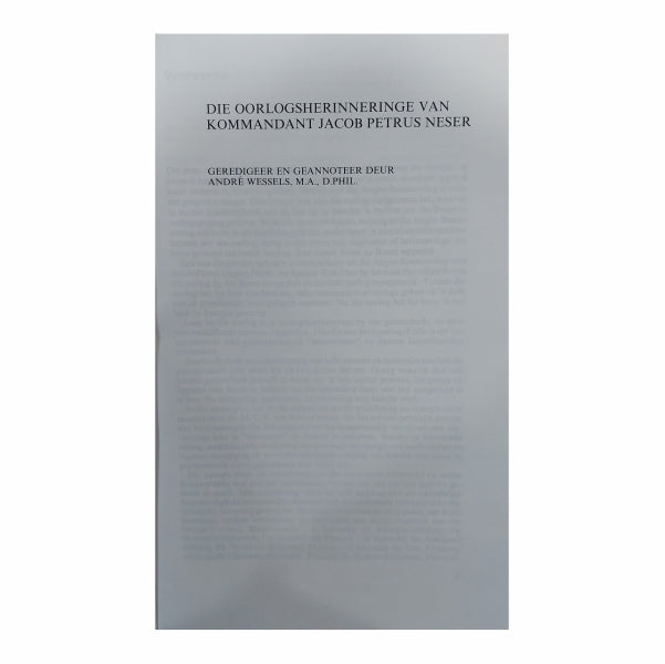 Die oorlogsherinneringe van Kommandant Jacob Petrus Neser.